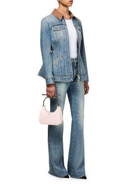 • Description : magnetic closure, silver finish, single handle, front logo, logo in silver letters, interior pocket, visible topstitching, hand carried, thin strap.