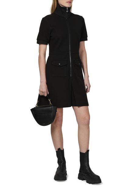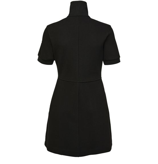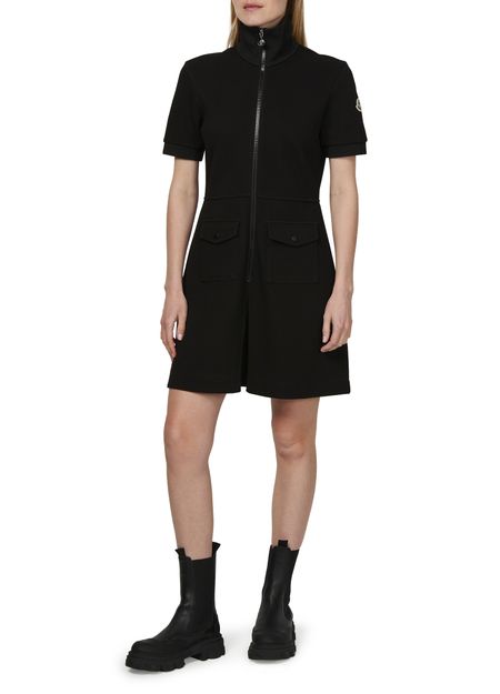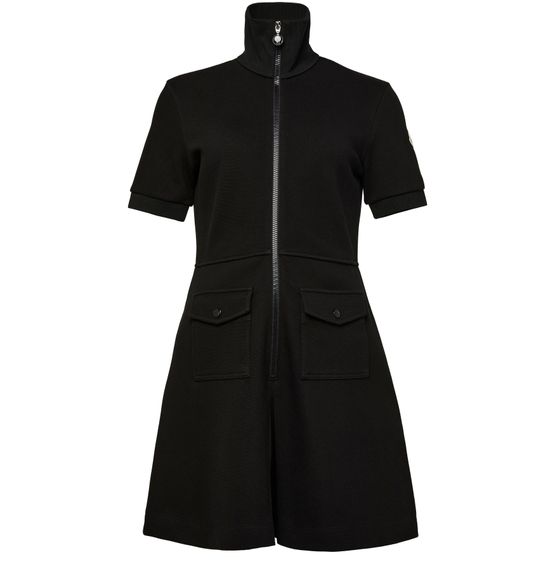 Moncler's mini dress is a sophisticated choice for cocktail and evening occasions. This stylish design features a high-neck and short-sleeved silhouette, complemented by a convenient zipper closure. With two front flap pockets, it combines practicality with elegance, making it the perfect statement piece for any fashionable wardrobe.