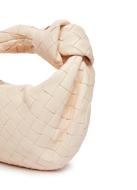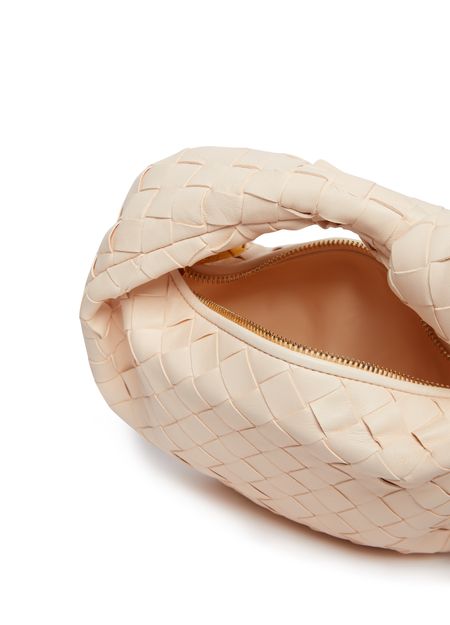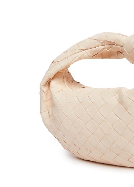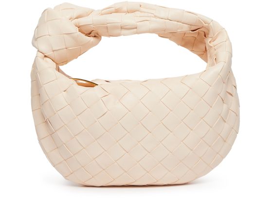 Reveal Bottega Veneta's Jodie mini bag, crafted in smooth leather with the iconic Intrecciato weaving technique. The wide strap and single handle offer versatile carrying, while gold-finish hardware and a spacious interior with zipper closure ensure both elegance and practicality for modern style.