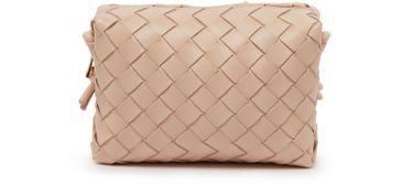 Bottega Veneta's Loop mini camera bag features an adjustable strap and a zipper closure. It showcases the brand's signature Intrecciato weaving technique and has a single compartment with calf leather lining. This versatile bag can be worn on the shoulder for a stylish and practical accessory.