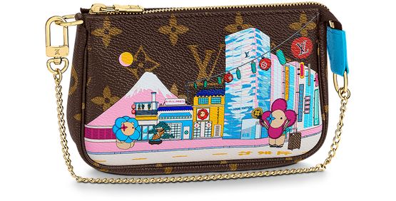 Louis Vuitton evokes the spirit of travel with this collectible edition of the Mini Pochette Accessoires in Monogram canvas. Its exclusive print pays tribute to Japan and features House mascot Vivienne in front of the famous Tokyo boutique, with Mount Fuji in the background. A perfect gift, this versatile mini pouch comes with a blue textile lining.
