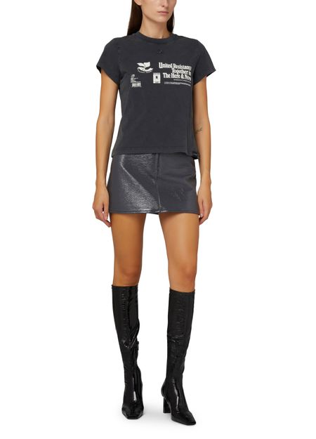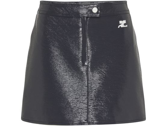 Reveal Courreges's mini skirt, a statement piece defined by its mini length and visible stitching. The button fastening adds a modern touch, while the sleek silhouette ensures effortless style. Perfect for transitioning from day to evening, this skirt brings a fresh edge to any wardrobe.