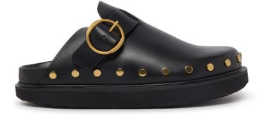 Isabel Marant's Mirst mules are crafted from smooth leather, featuring a round toe and a buckled strap for a secure fit. The studded details add a touch of edge to the design, while the thick outsole ensures durability and comfort. These versatile mules are perfect for adding a stylish finish to any outfit.