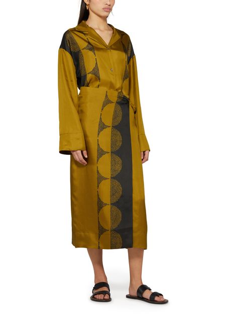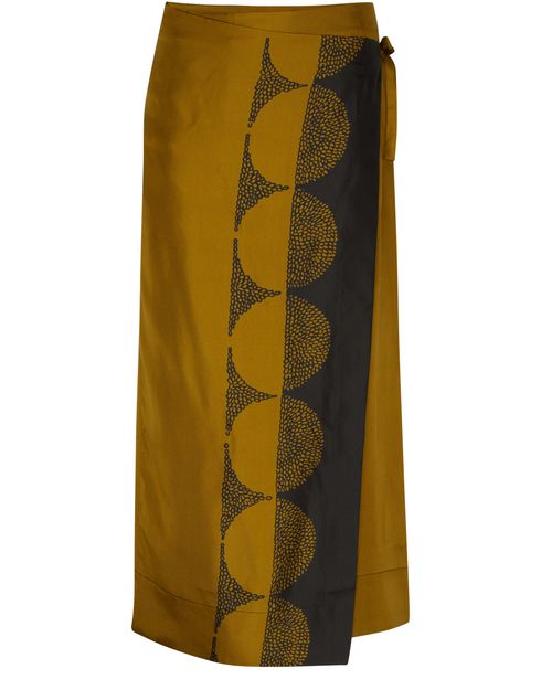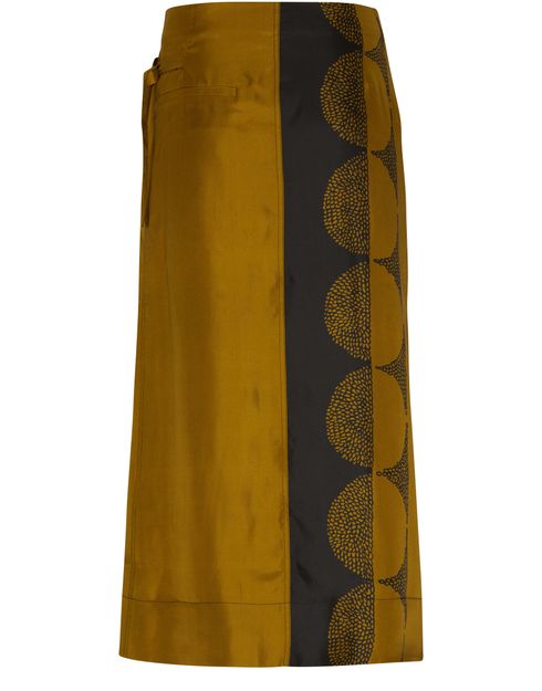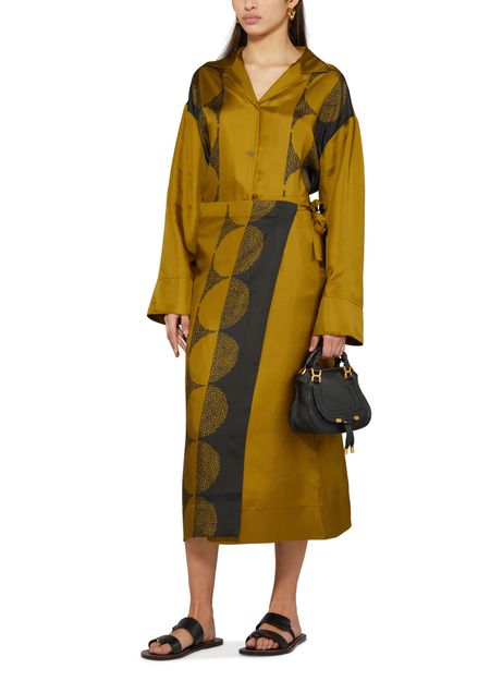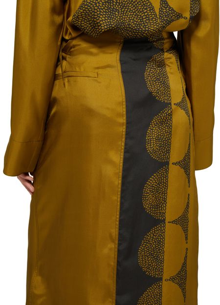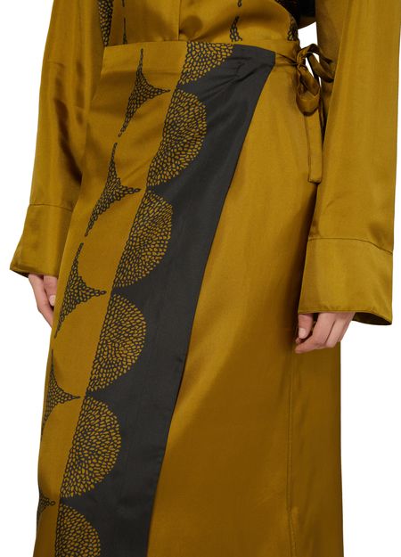 : Mid-length wrap skirt in "Pochoir" pattern silk twill