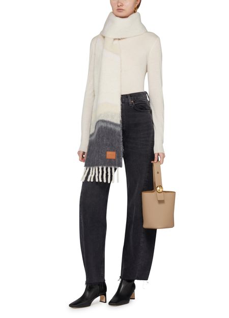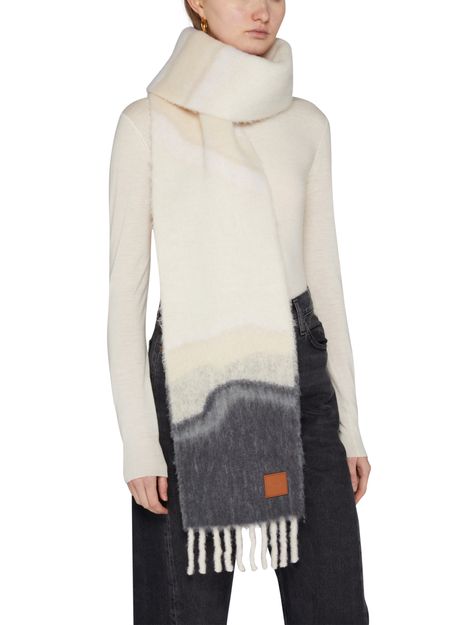 Wrap yourself in luxury with Loewe's Mohair and alpaca scarf, showcasing a beautifully appliquéd logo that speaks to sophistication. Its printed design adds a unique flair, while the fringed edges provide a playful touch. Perfect for elevating any outfit, this scarf is a statement piece for the discerning fashion lover.