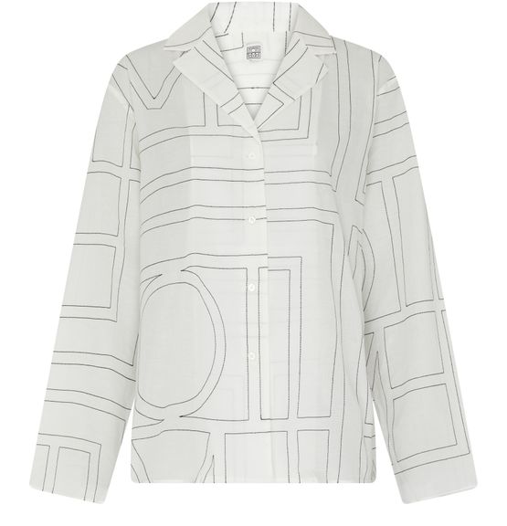 Toteme's Monogram cotton pyjama top showcases a long-sleeved design with a front buttoned closure, perfect for relaxed evenings. The all-over print features geometric details, while the appliquéd logo at the back label adds a touch of sophistication. Visible stitching enhances its charm, making it an essential addition to your loungewear collection.