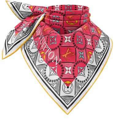 Joining the Spring 2023 capsule collection, the all-silk Monogram Tiles square reinvents the House’s most emblematic pattern. Evoking the beauty of mosaics, it alternates Monogram Flowers and the LV Initials in colours that contrast with the edges for an eye-catching effect when worn. Plus, it pairs perfectly with the matching Monogram Tiles scrunchie.