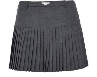 Marine Serre's Moon Diamond jacquard tailoring pleated skirt showcases a mini A-line silhouette, enhanced by pleated details and a belted waist for a flattering fit. With a zipper closure and belt loops, it offers practicality, while the appliquéd logo and visible stitching add a touch of sophistication, featuring a logo at the back.