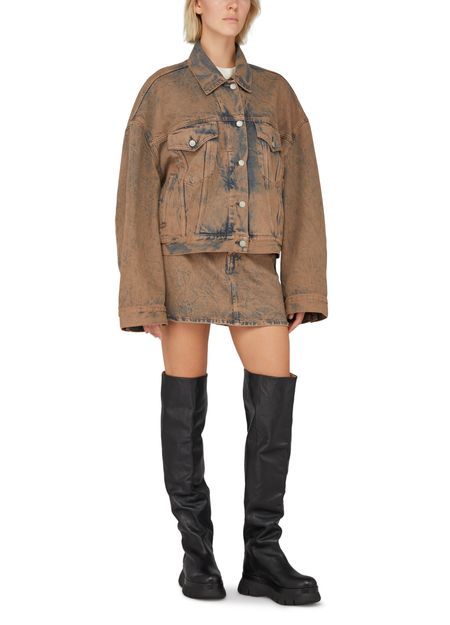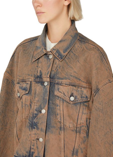 Stay cozy and stylish in Acne's Morris oversized denim jacket. Made from warm fabric, this jacket features a front buttoned closure and breast pockets for a classic look. The raised sleeves add a modern touch to this timeless piece. Perfect for adding a cool layer to any outfit.