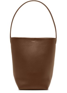 The Row's N/S Park Medium Tote Bag is a sophisticated leather shopper that effortlessly blends style and functionality. Crafted from grained leather, it features a sleek front logo and a versatile design that can be hand carried or worn on the shoulder. The durable leather handle ensures comfort and elegance.