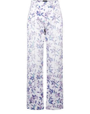 Description : Regular-fit pants, front button, side pockets, belt loops, all-over floral print, concealed zipper.