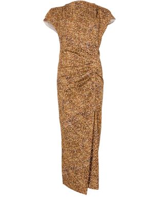 Reveal Isabel Marant's Nadela dress, a captivating midi creation with draped details and a stylish front slit. This cap-sleeved design embodies modern elegance, making it ideal for both casual outings and evening events.