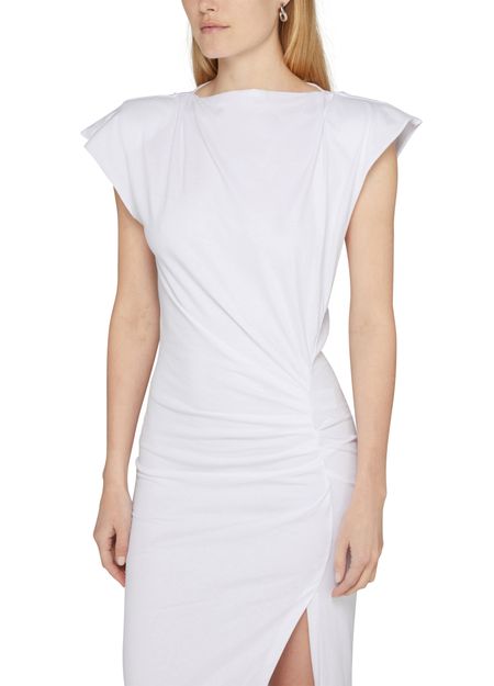 Isabel Marant's Nadela long dress showcases a stunning draped detail that flows elegantly. With a crew neck and short sleeves, it exudes effortless chic. The appliquéd logo adds a touch of sophistication, while the concealed back zipper closure ensures a seamless fit. Perfect for any occasion, this maxi dress is a must-have.