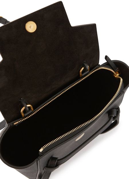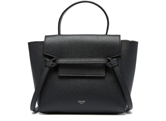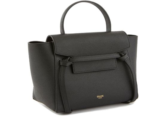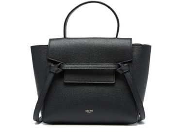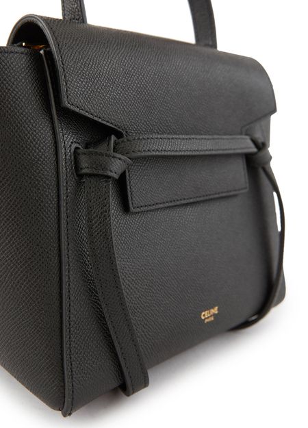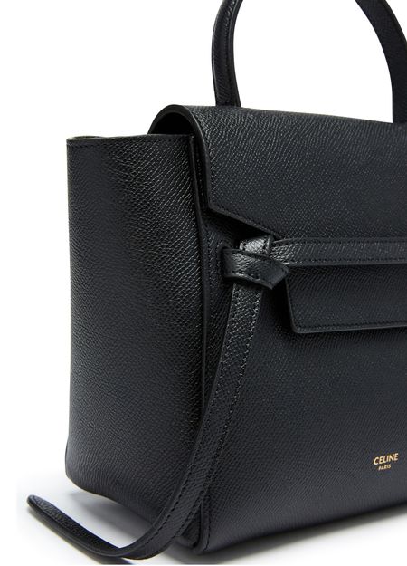 Celine's Nano belt bag in grained calfskin is a versatile companion, effortlessly transitioning from hand carry to shoulder or cross-body styles. With its elegant flap closure featuring a hidden metallic piece and zipped pocket beneath, this bag combines functionality with luxury. The removable leather strap and chic handle add to its allure.