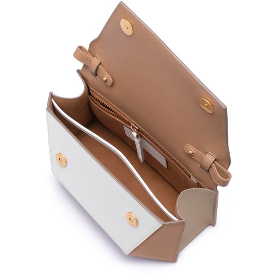 • Description : Crossbody bag, single handle, leather handle, front logo, smooth leather, flap closure, visible topstitching.