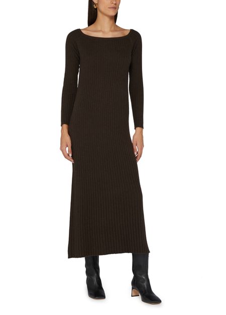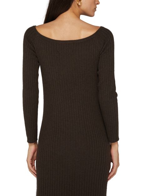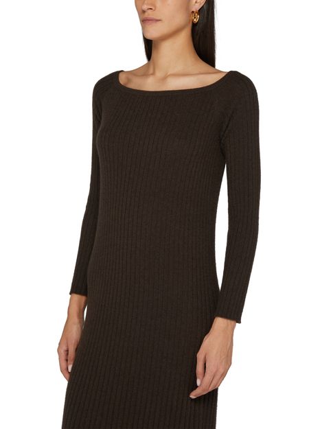 Lisa Yang's Nari midi cashmere dress offers a sophisticated blend of elegance and comfort. This long-sleeved knitted dress features a unique bare shoulder design, while the appliquéd logo adds a touch of refinement. The logo at the back label completes the look, making it a must-have for any stylish wardrobe.