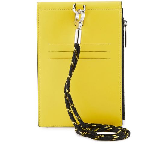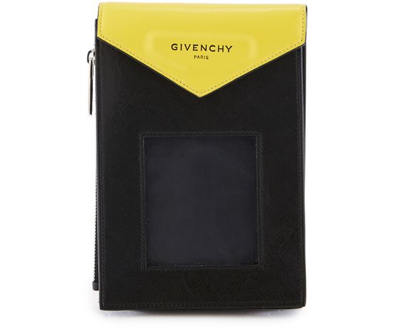 Givenchy creates a neck pouch with sleek lines and stylish top stitching on a vibrant smooth leather. A practical piece with a zip fastener and metal loop the little cut-out displays the cotton lining. A unique and urban piece that displays the skill this brand has with luxury leather.