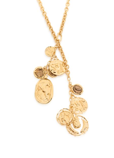 Reveal Chloe's multiple chains pendant necklace, a striking piece with a radiant gold finish. The spring ring clasp ensures secure wear, while the layered design brings a modern edge to any ensemble. This necklace is the perfect statement for those who appreciate refined, contemporary style.