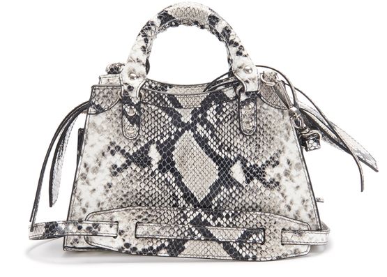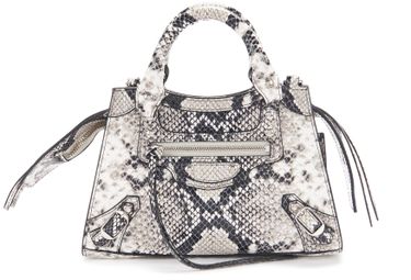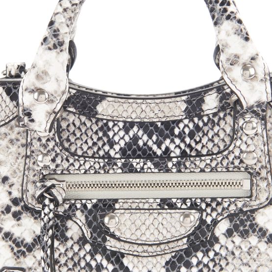 The Neo Classic City mini bag is signed by Balenciaga. This leather piece combines a trapezoidal design with braided handles and zipped closures decorated with tied pulls.