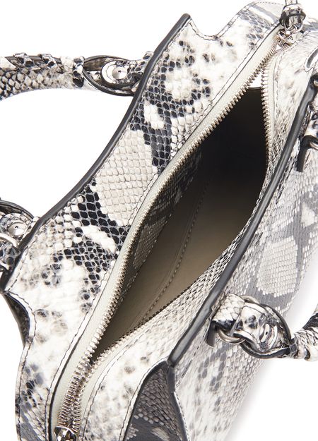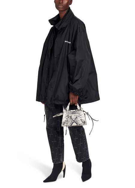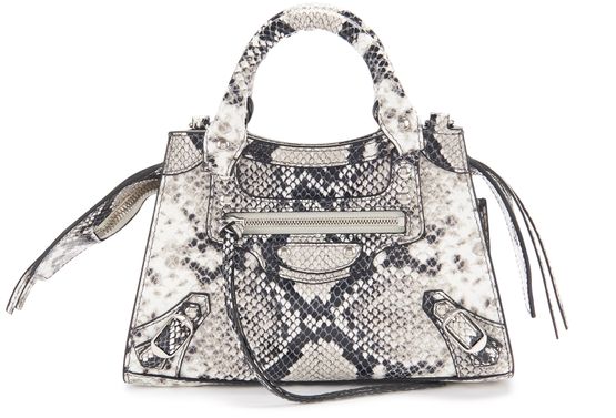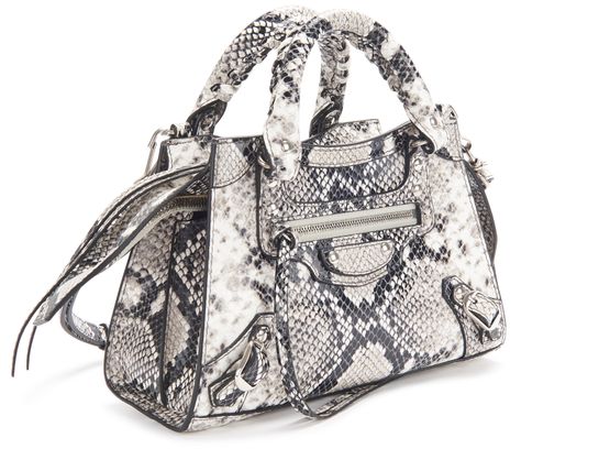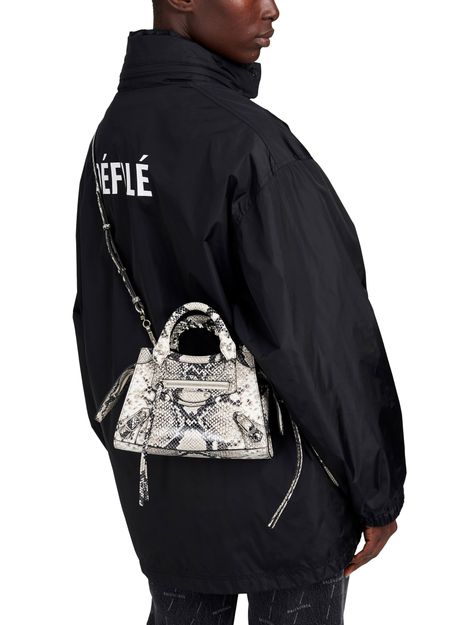 Description : Mini bag, zippered front pocket, zippered interior pocket, printed Balenciaga logo, collection of textures, calfskin leather, worn in the hand.