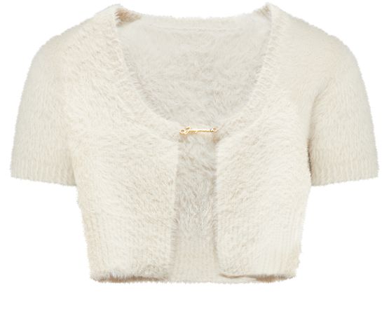 The Jacquemus Neve Crop Top is made of a warm fabric that's perfect for cooler weather. It features short sleeves and a front slit for added style and comfort. The metallic logo on the front adds a touch of sophistication to this versatile piece.