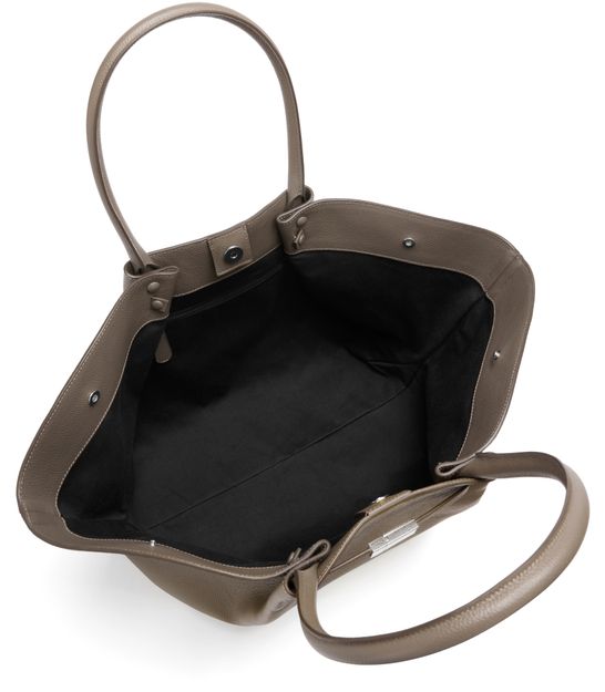 • Description : magnetic closure, single compartment, gold finish, double handles, front logo, printed logo, zippered interior pocket, visible topstitching, hand carried, worn on the shoulder.