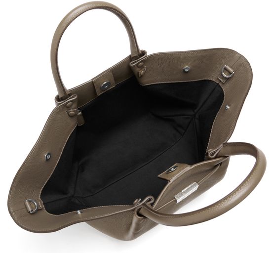 • Description : Shopper / tote bag, shoulder bag, double handles, leather handle, carry handle, thin strap, adjustable, detachable strap, front logo, engraved logo, grained leather.