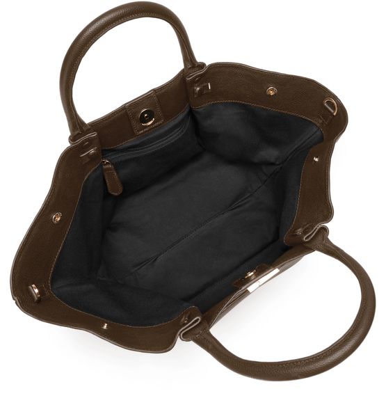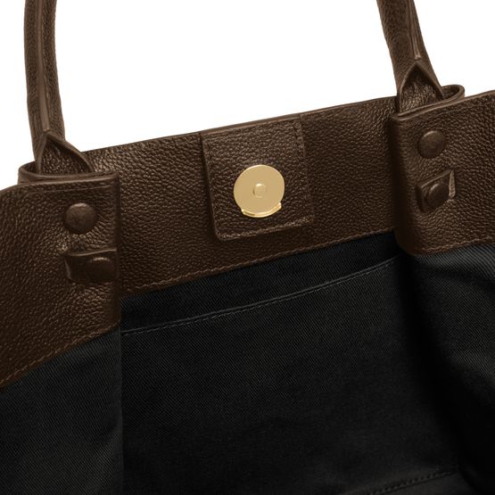 Reveal Demellier's The Midi New York handbag, crafted from grained leather with double handles and a thin, adjustable strap for versatile wear. The front logo, visible stitching, and silver finish add refined detail, while spacious compartments and secure snap-button fastening ensure both style and practicality.