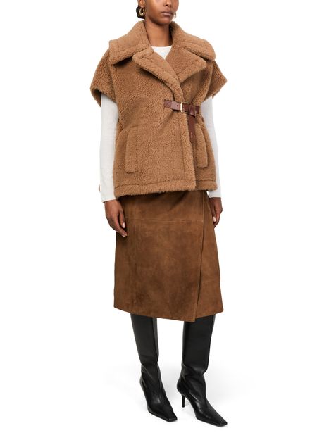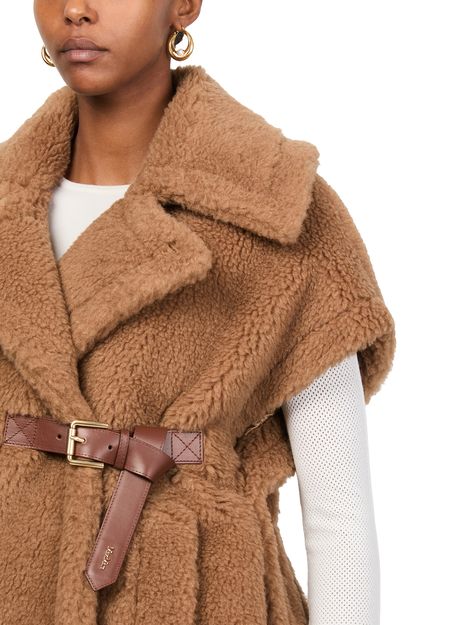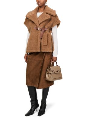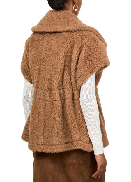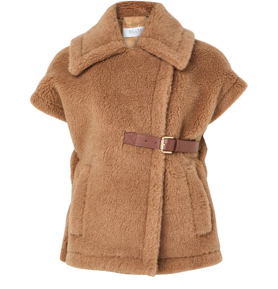 Reveal Max Mara's Newabavo Teddy cape, a masterpiece in knitwear. This regular fit piece features a warm fabric with a terrycloth lining, offering both comfort and style. The short sleeves and fur detail add a touch of elegance, making it perfect for any occasion.