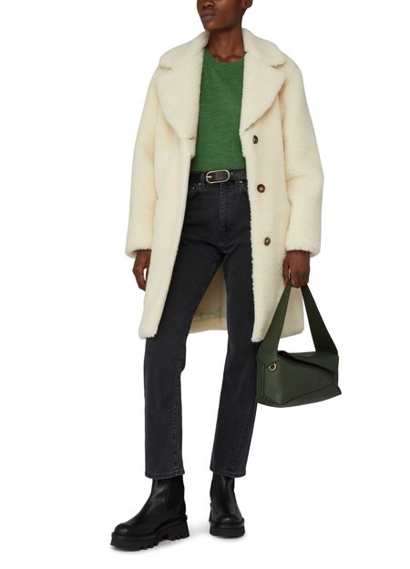 APC's Nicolette coat is a knee-length, long-sleeved outerwear with a notched collar and front buttoned closure. It features side pockets for added functionality and a logo at the back label for a touch of brand detail. This classic coat is a sophisticated addition to any wardrobe.