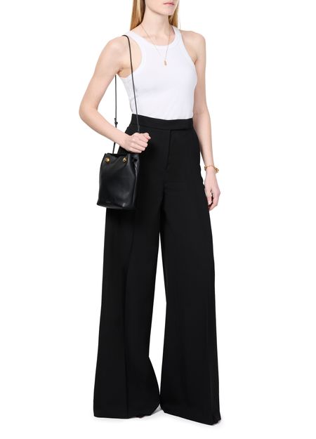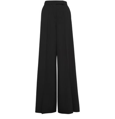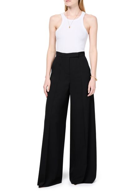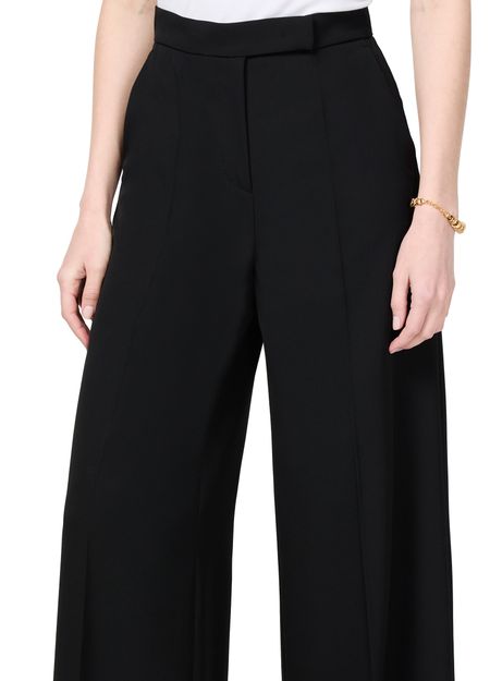 Max Mara's Ninfa wide-leg pants showcase a high-waisted fit with a concealed closure, offering a sleek silhouette. Back darts enhance the tailored look, while visible stitching adds a touch of refinement. These ankle-length formal pants feature a wide cut, making them perfect for both office wear and elegant evenings.