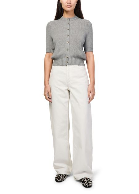 Reveal Khaite's Nora cardigan, crafted in ribbed fabric for a refined texture. The short sleeves and button fastening offer a modern silhouette, making it a versatile piece for layering or standalone wear. Elevate your wardrobe with this sleek essential, perfect for both casual and sophisticated looks.