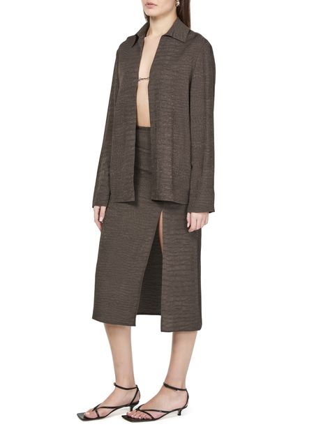 Jacquemus's Notte shirt showcases a sleek, tailored silhouette with a unique button-up design that effortlessly blends sophistication and casual charm. Crafted from luxurious fabric, its lightweight feel ensures comfort while exuding an air of elegance. Perfect for evening gatherings or daytime outings, this shirt is a versatile wardrobe essential.