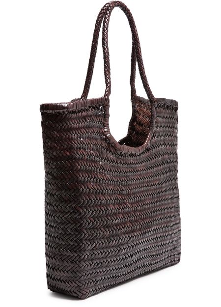 Reveal Dragon Diffusion's NS diagonal shoulder bag, a masterpiece of open weave craftsmanship. This tote features double handles and a large interior compartment, perfect for the modern individual seeking both style and functionality. The visible topstitching adds a touch of elegance to this versatile accessory.