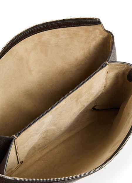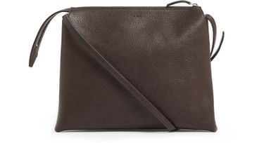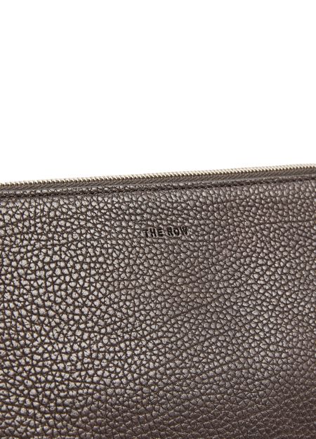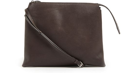 The Row's Nu Twin crossbody bag combines elegance and practicality. Hand carried or worn on the shoulder, it features a sleek zipper closure and visible topstitching. This sports bag, with a silver finish and single compartment, is perfect for daily essentials, while the thin strap and single handle offer versatile styling options.
