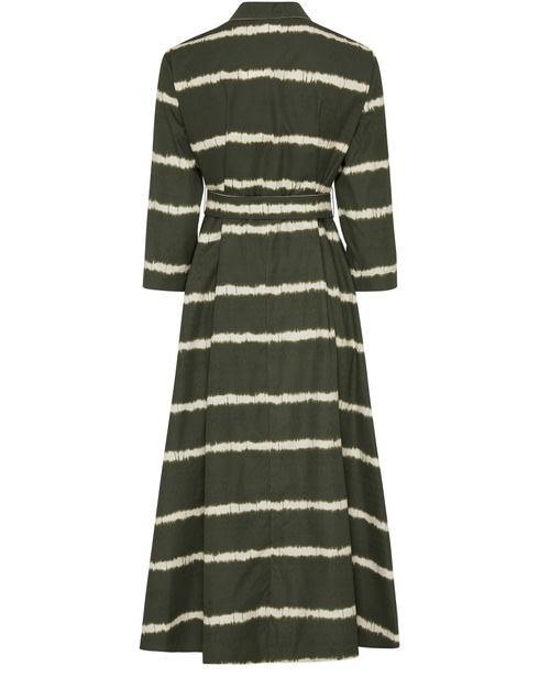 • Description : front buttoned closure, button fastening, long-sleeved, midi dress, shirt collar.