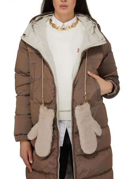 Max Mara's Ombrat gloves are elegant mittens with a luxurious fur detail that adds a touch of sophistication. They feature a slender, detachable shoulder strap for added versatility. The gloves are adorned with metal and gold finishes, giving them a chic and stylish look suitable for any occasion.