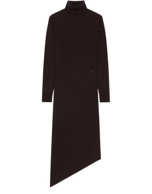 Reveal Courreges's asymmetric midi dress, crafted from warm fabric for a refined feel. The rollneck and dropped long sleeves create a modern silhouette, while the unique asymmetric cut adds a dynamic edge. Perfect for elevating your style at any sophisticated gathering.
