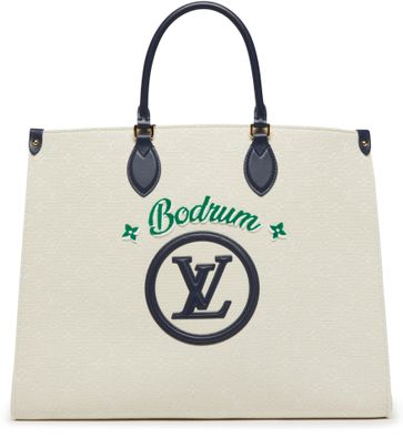 Designed for summer getaways, this “Bodrum” edition of the OnTheGo tote is made from Monogram jacquard canvas, enhanced with colorful embroidery, contrasting leather trim and a graphic LV Circle emblem. Roomy, versatile and fitted with both handles and shoulder straps, this iconic carryall offers a range of chic carry styles.