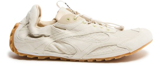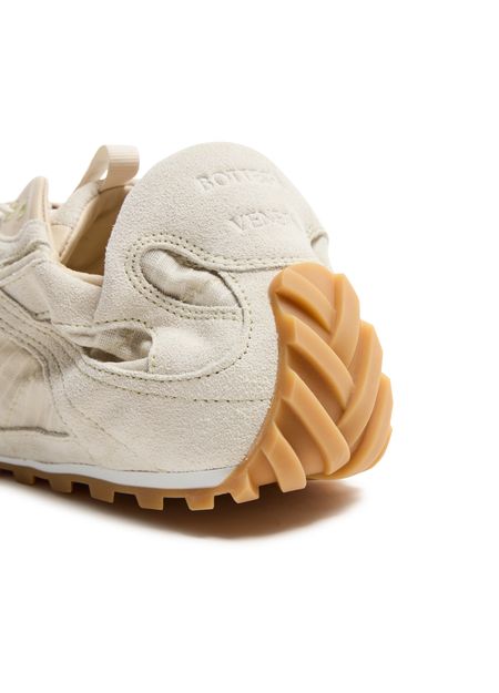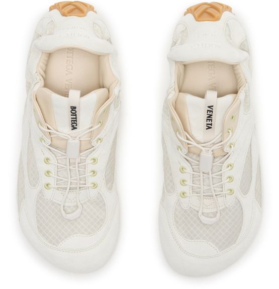 Reveal Bottega Veneta's Orbit Flash sneakers, crafted with a round closed toe and flat heel for everyday ease. The contrasting sole and visible stitching add a modern edge, while laces and a strap ensure a secure fit. Signature logos on the tongue, back, and engraved details complete the look.