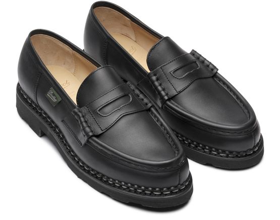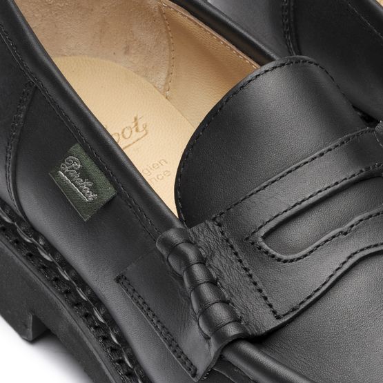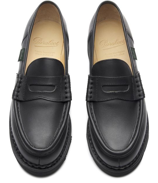 Reimagine Paraboot's Orsay loafer with a low block heel and embossed logo. Featuring a contrasting sole and visible stitching, these loafers offer a modern twist on a classic style. The round toe and closed design ensure a sophisticated look perfect for any occasion.