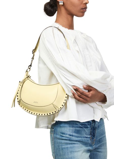 Unveil Isabel Marant's Oskan Moon shoulder bag, crafted from grained leather with studded details. This chic accessory features an adjustable, detachable strap and a zipper closure, ensuring both style and functionality. The embossed logo and silver finish add a touch of elegance to this versatile piece.
