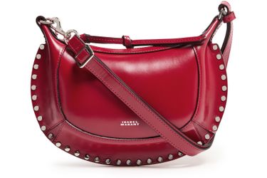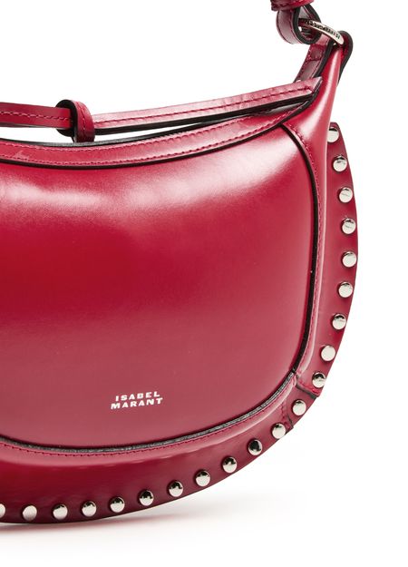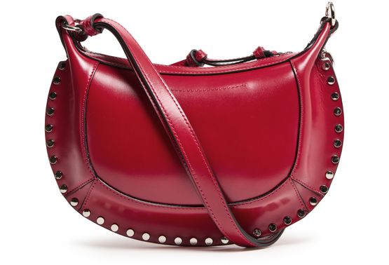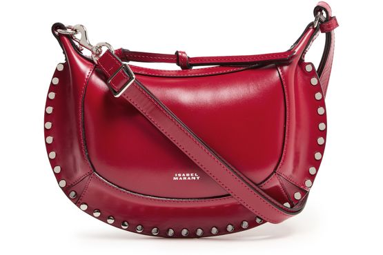 Reveal Isabel Marant's Oskan Moon bag, a stunning shoulder piece crafted from smooth leather. This bag features studded details and a single handle, offering both style and functionality. With a zipper closure, interior pocket, and visible topstitching, it embodies modern elegance with a metallic finish.