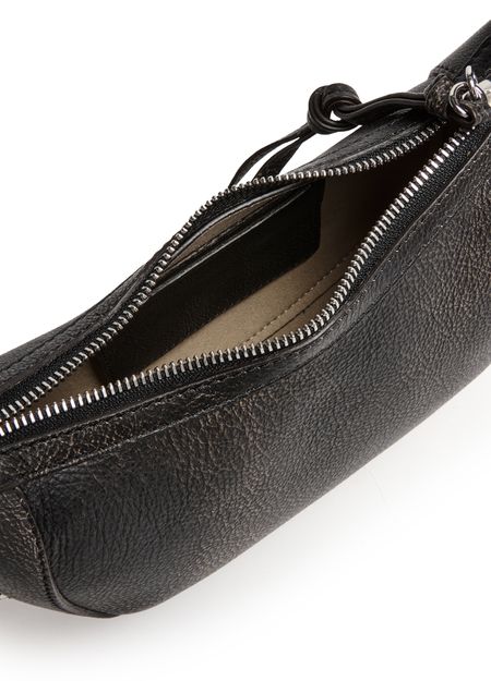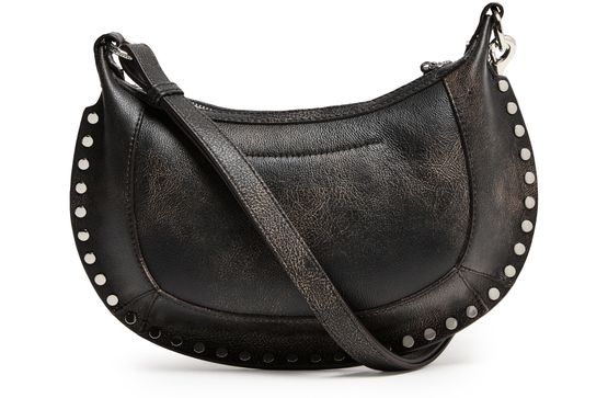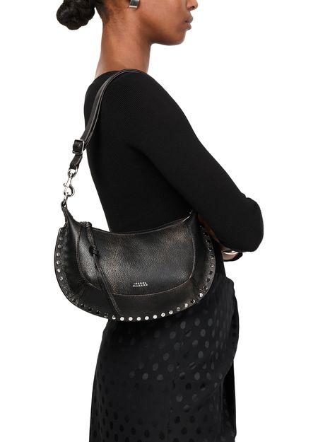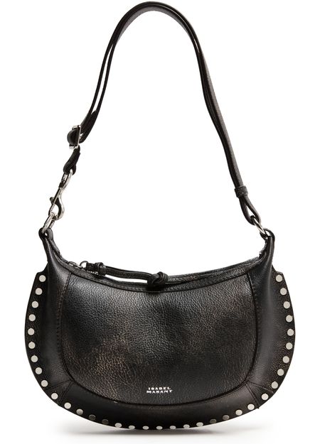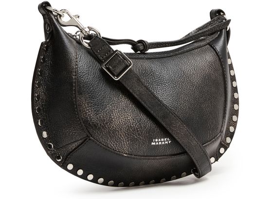 Reveal Isabel Marant's Oskan Moon, a masterpiece of grained leather with studded details. This mini bag features a single handle and a zipper closure, offering both style and security. The interior pocket and visible topstitching enhance its functional elegance, while the front logo in silver letters adds a signature touch.