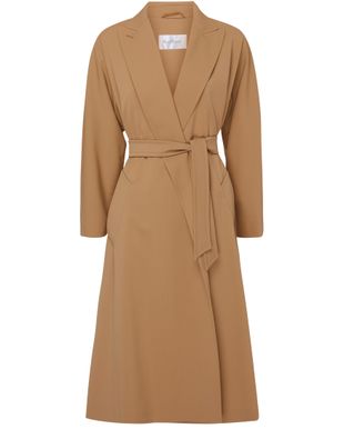 Max Mara's Ottico coat features a flared cut that creates a flattering silhouette. It is designed with a tailored piqué collar and long sleeves for a sophisticated look. The belted waist cinches in the waist for a defined shape, while side pockets add functionality to this elegant and timeless outerwear piece.