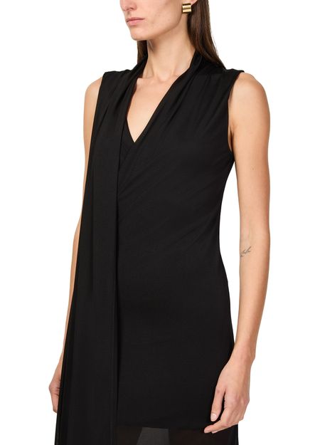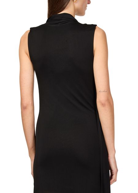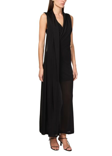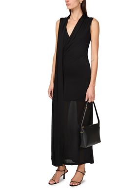 Reveal Toteme's Overlapped Scarf Dress, a seamless blend of elegance and modernity. This draped dress features a loose fit and sleeveless silhouette, accentuated by a sophisticated V-neck. Crafted for versatility, its draped detail and maxi length make it a perfect choice for any occasion.