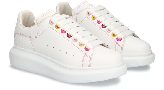 Alexander McQueen adds an on-trend streetwear touch to these Oversize sneakers. This design features an oversized sole, contrast stitching and the brand's logo printed on the back.