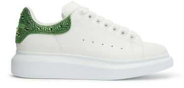 The Alexander McQueen Oversize sneakers are a stylish pair of lace-up shoes that feature a thick outer sole for added comfort and durability. The visible topstitching adds a touch of sophistication, while the contrast details provide a unique and eye-catching look. These sneakers are perfect for anyone looking to make a statement with their footwear.