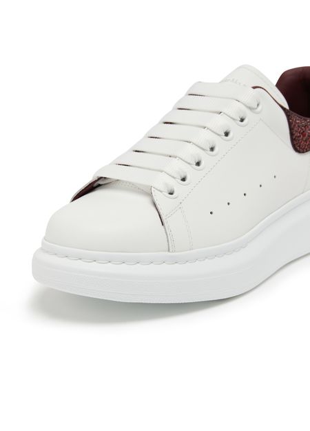 Alexander McQueen's round toe sneakers are a statement piece for any outfit. Featuring a closed design with the brand's logo on the tongue and at the back, these oversize sneakers exude luxury. The thick outer sole provides both comfort and style, making them a must-have for any fashion enthusiast.