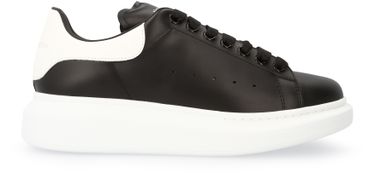 Alexander McQueen's Lace-up shoes feature a flat wedged sole and an oversized sneaker silhouette. The tongue and ankle boast the brand's logo, adding a touch of luxury. The contrast details add a dynamic element to this modern and edgy footwear. Perfect for adding a stylish edge to any outfit.